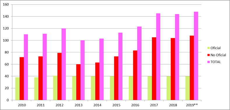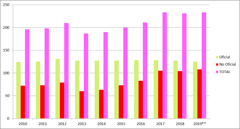del año 2010 - 2017 se considera definitiva / 2012 a 2018 Cifras Matrícula