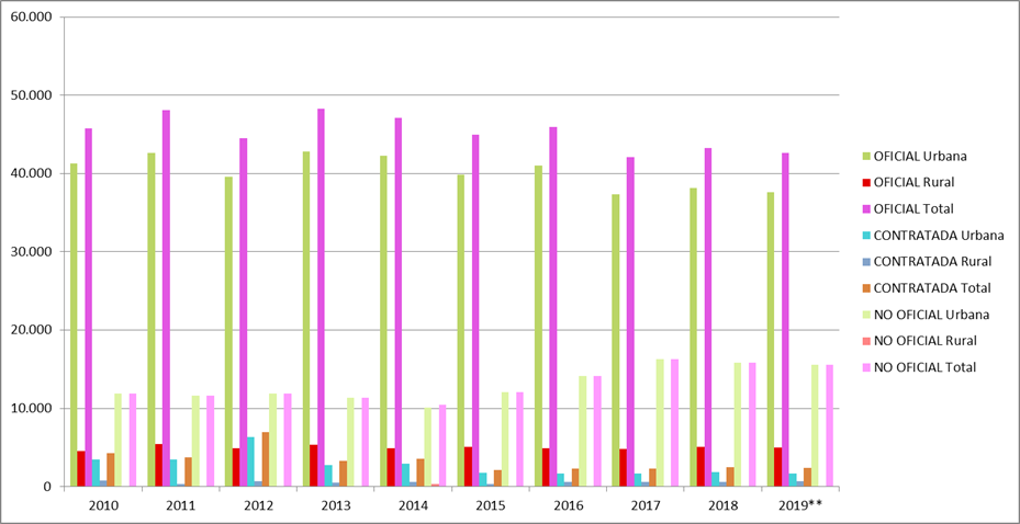 año 2010 - 2017 se considera definitiva / 2012 a 2018 Cifras Matrícula